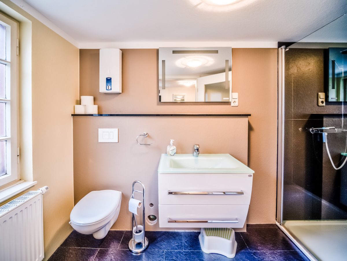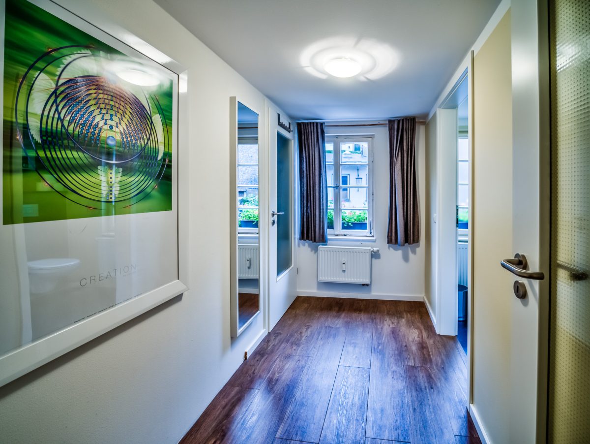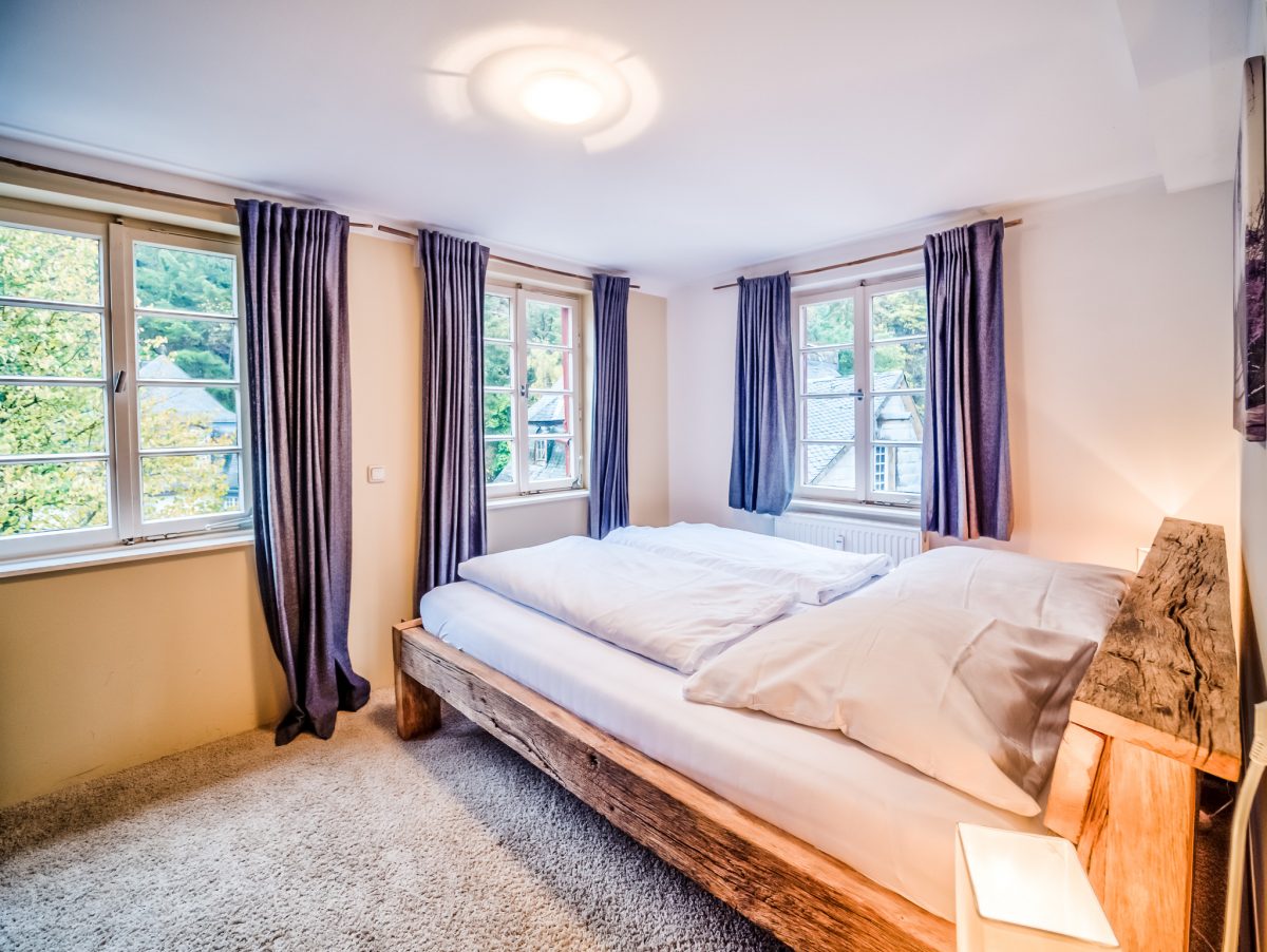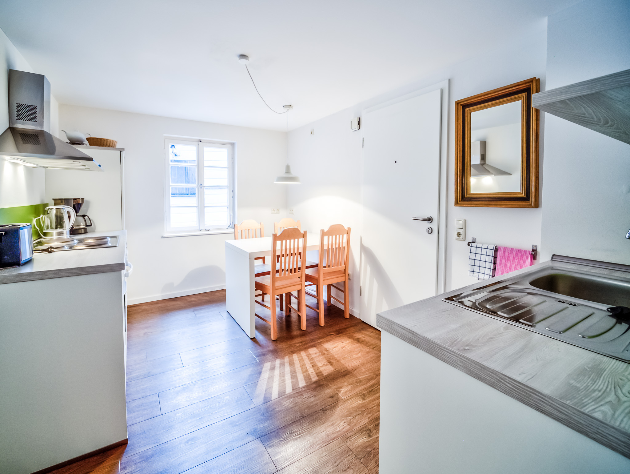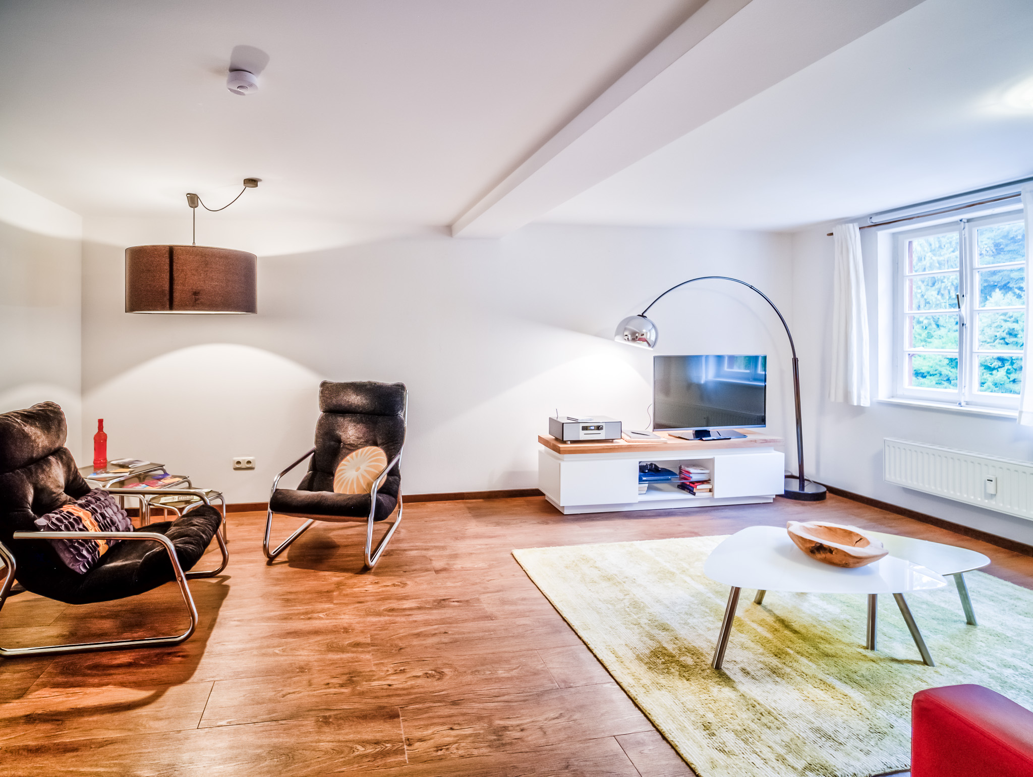 Die Wohnung ist für bis zu 4 Personen geeignet. Bad und Küche sind modern. Der Mix aus Alt und Design macht den besonderen Charme der Wohnung aus. Das Fenster öffnen, den Duft der Bäume riechen, Blick zur Rur – rauschendes Wasser.