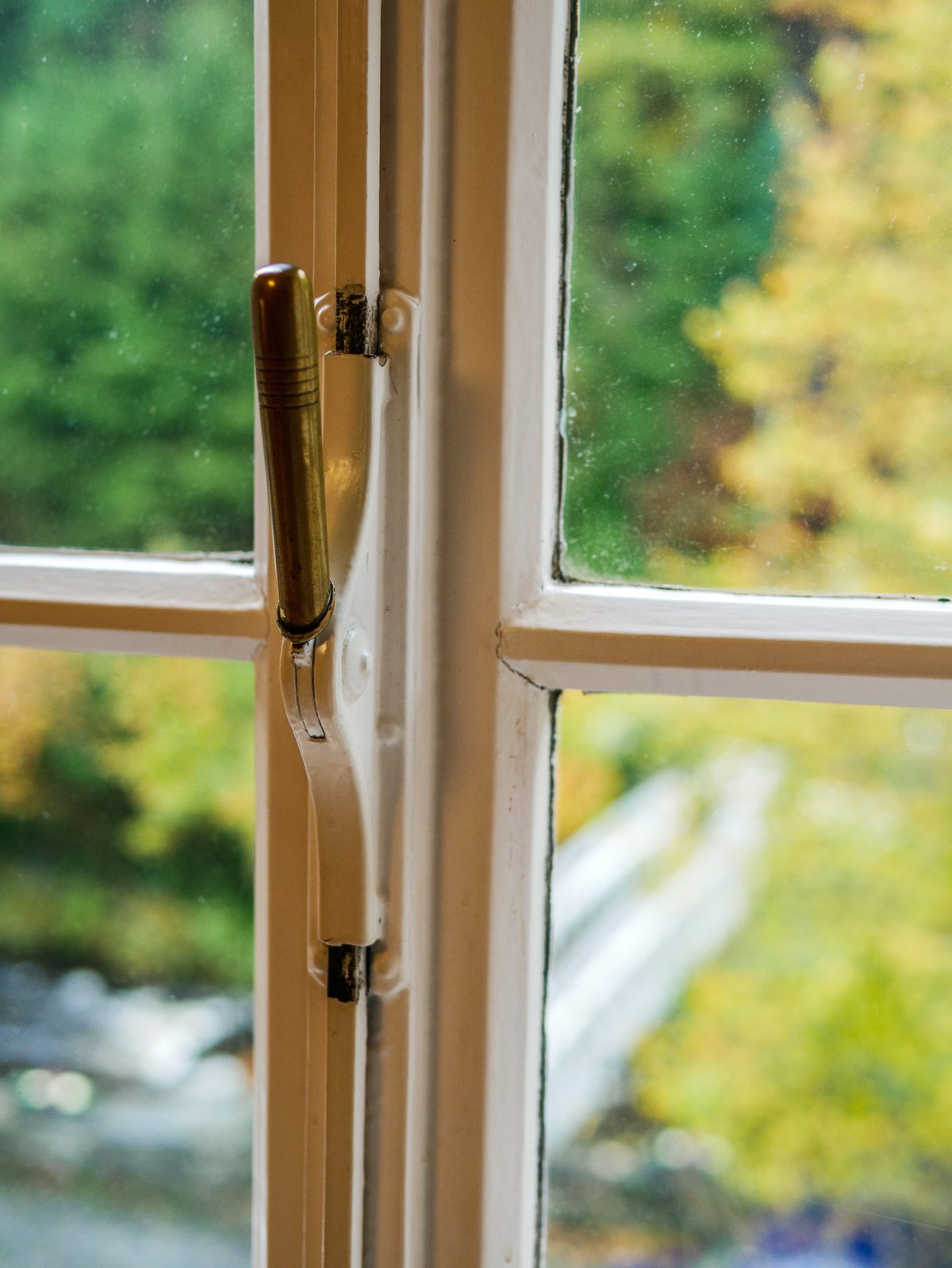 Wohlfühlbett aus Massivholz mit Kaltschaummatratzen (160×200). Ein uralter Barockschrank. Über-Eck-Fenster: Turmfeeling!